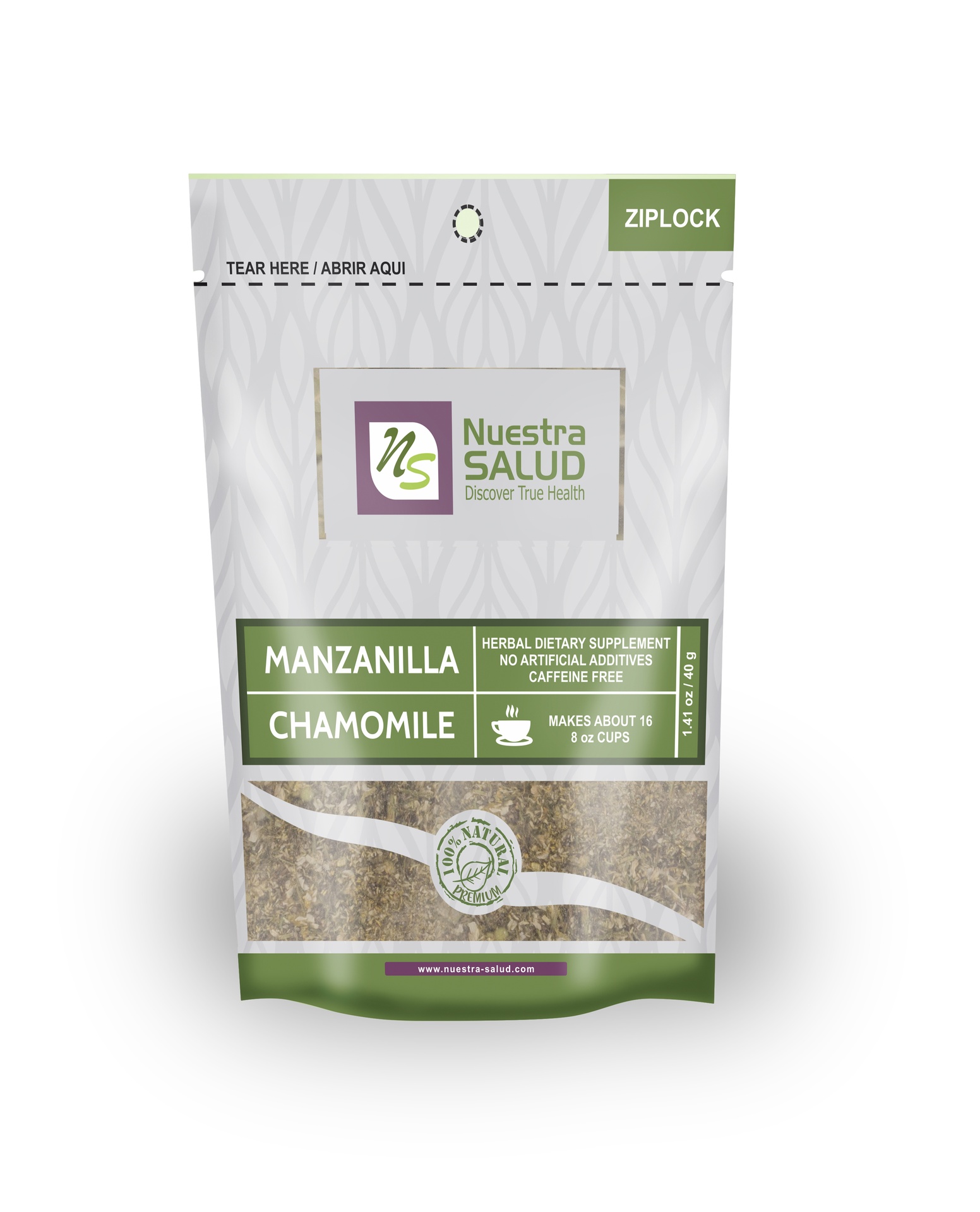 Manzanilla de Nuestra Salud es 100% natural y cuidadosamente procesada para conservar todas sus propiedades. Es perfecta para quienes buscan un remedio natural para relajarse, mejorar la digestión y cuidar su piel de manera suave y efectiva.